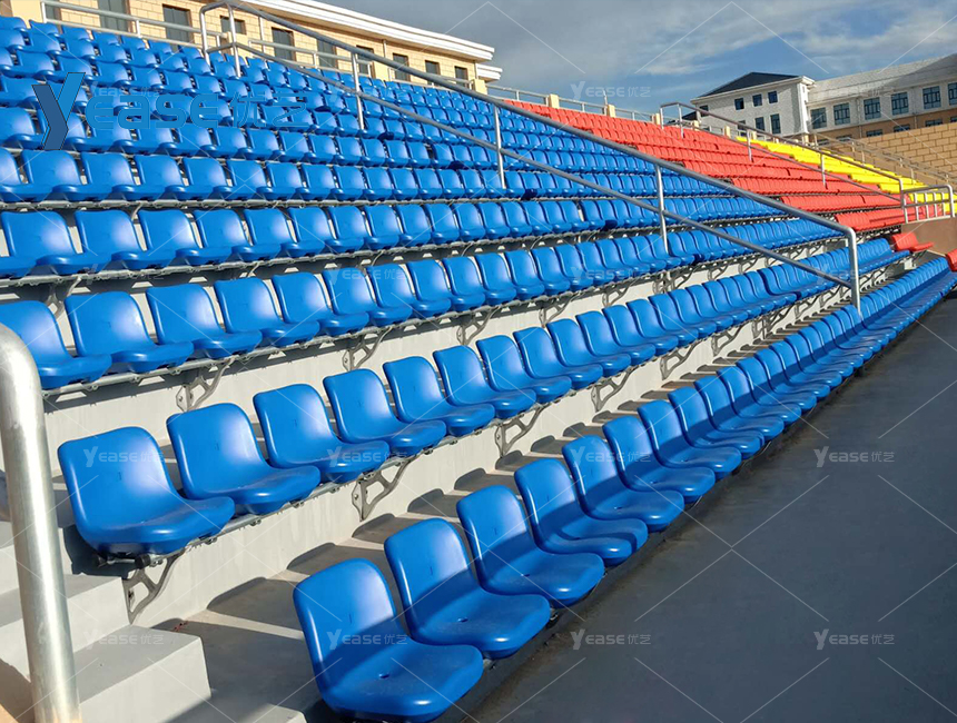 堅固耐用的鋼結構看臺系統(tǒng),滿足戶外場館長期使用與高承載要求。